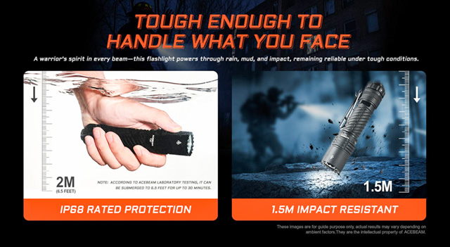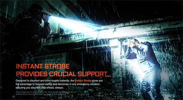 Turbo : 4,000lm 440m 30秒 & 700lm 158m 3.5時間