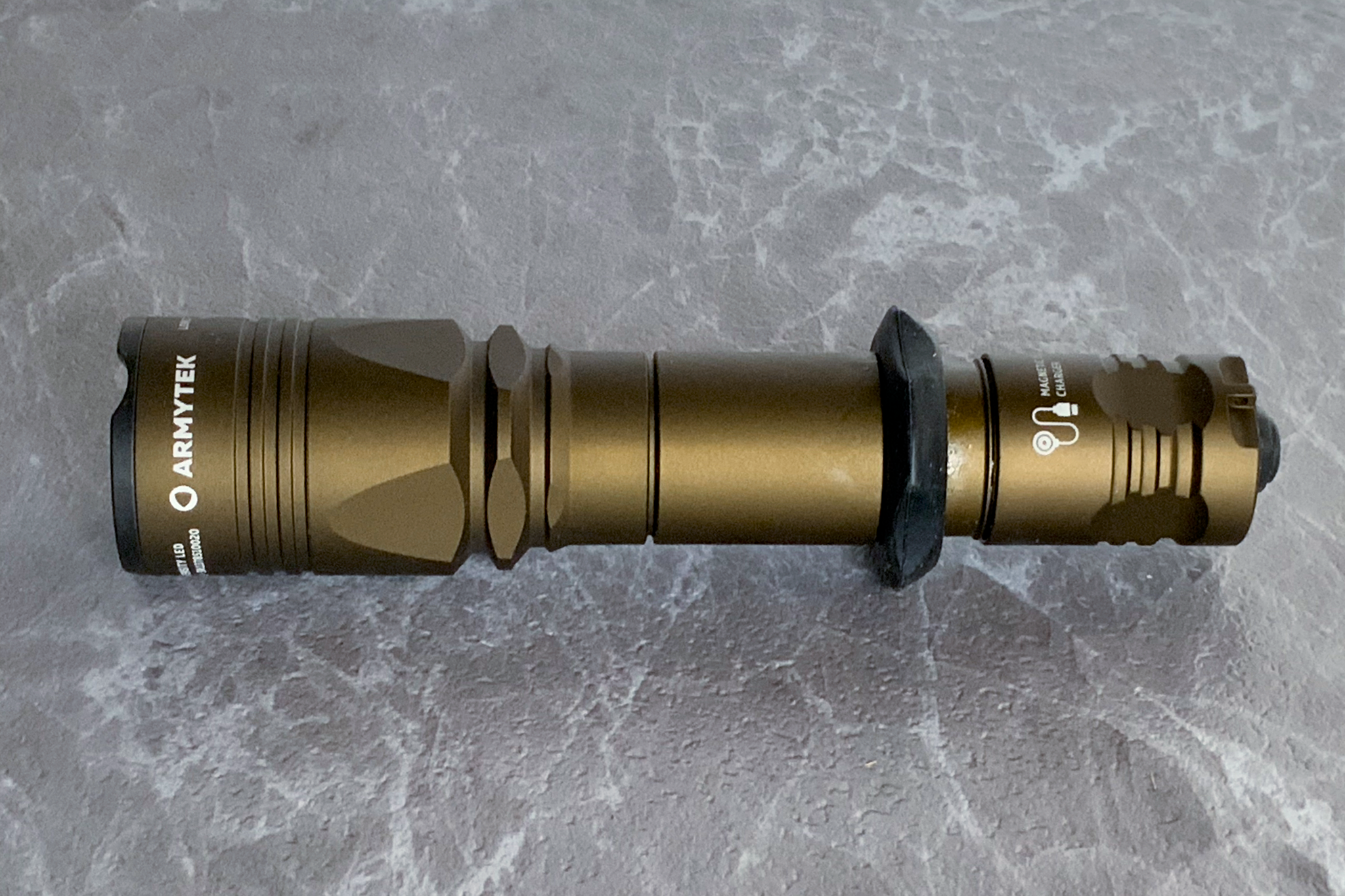 18650リチウムイオン3500mAhバッテリー、マグネット式USB充電器、クリップ、ランヤード、ナイロンホルスター、シリコン製タクティカルリング(装着済)、スペアOリング2個、取扱説明書
