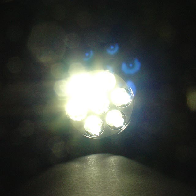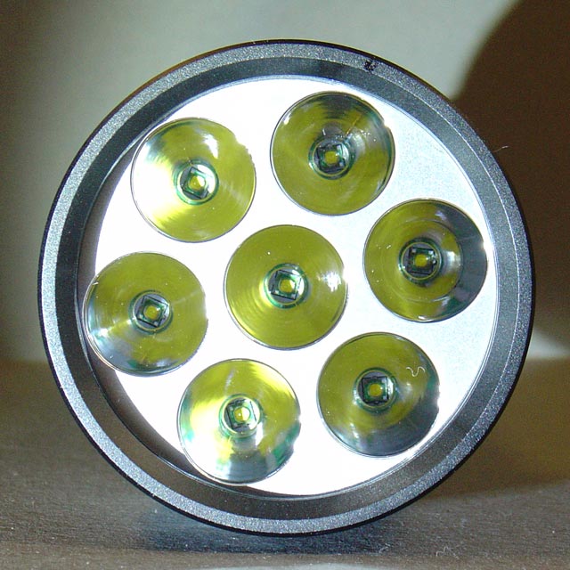 ★下の写真では光学系がTIR(コリメーター)に見えますが、リフレクターです。SMOですが、XP-G多灯式の為、一灯の様に見えます。照射パターンも奇麗です。かなり神経質な方以外は照射パターンにはご満足頂けると思います。