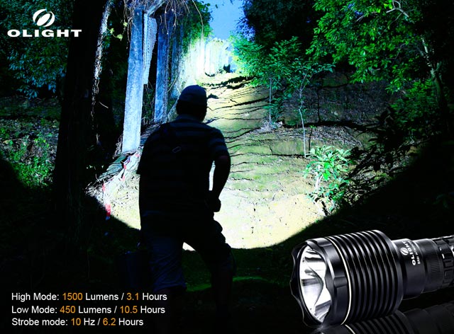 *3モード切り替え:照度2段階:High : 1,500lumen(90分), Low : 450 lumen,(10.5時間)ストロボ 10Hz (3+時間)